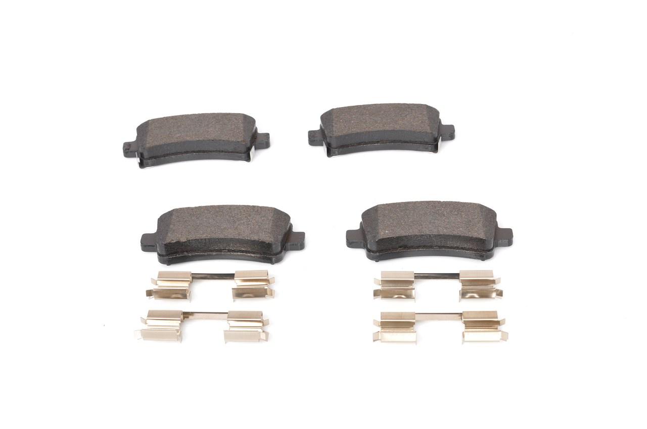 BOSCH Bremsbelagsatz, Scheibenbremse 0 986 494 668 hinten rechts links mit Zubehör für HOLDEN VAUXHALL SAAB OPEL CHEVROLET 13338368 1605179 13237766