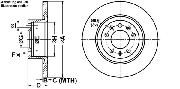 ATE Bremsscheibe 24.0112-0216.1 hinten rechts links voll 290mm für PEUGEOT 9683993280